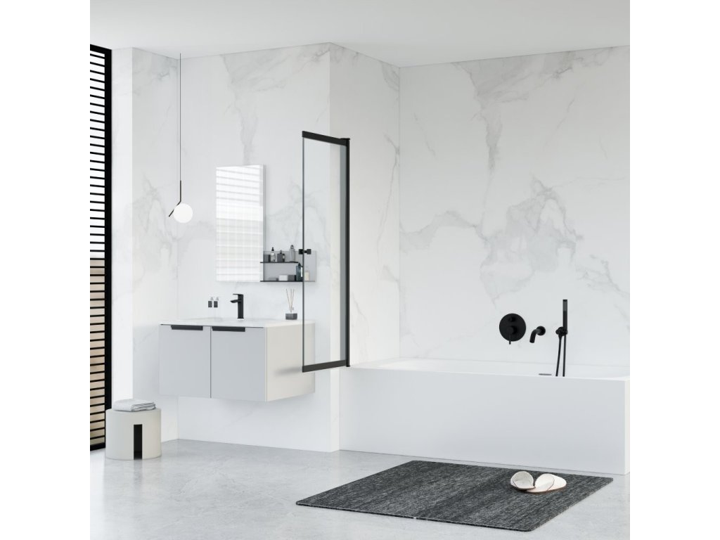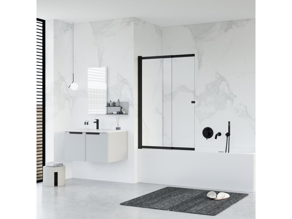 Vaňová zástena EASY SLIDE BLACK NEW, 100 cm, 150 cm, Univerzálna Ľavé / Pravé, Číre bezpečnostné sklo - 5 mm, Čierna matná