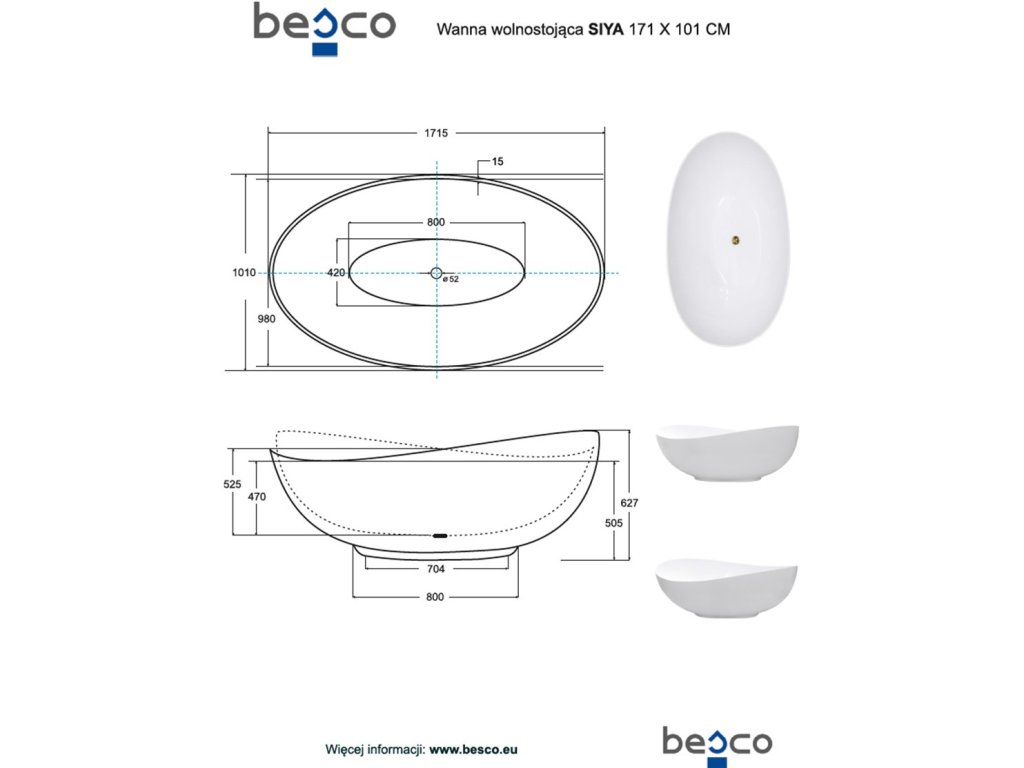 Samostatne stojaca vaňa SIYA sa Vám odmení pocitom vysokého komfortu . Budete ležať v kúpeli a okolo Vás bude dosť miesta, nič Vás nebude obmedzovať. Vaňa aj vonkajší plášť tvoria kompaktný celok . Hladký povrch umožňuje jeho ľahkú údržbu. Vaňu nie je potrebné obmurovať a obkladať a súčasťou vane je aj kvalitná odtoková súprava (systém CLIC-CLACK bez prepadu ).