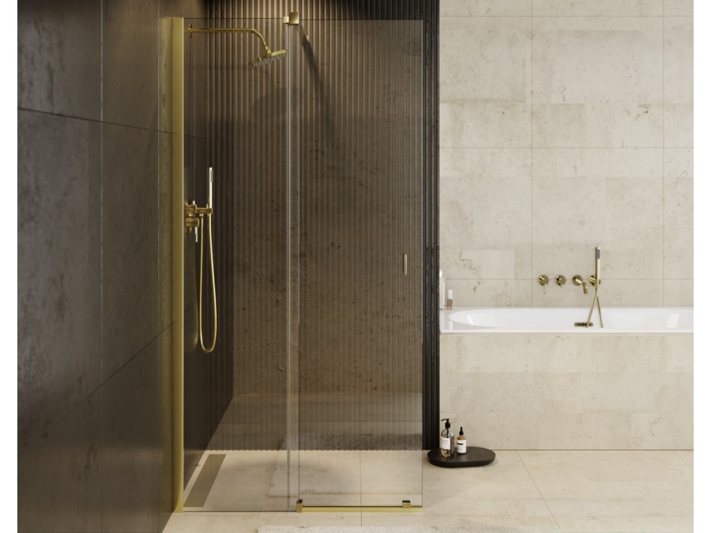 Walk-in sprchovací kút VAYO GOLD, 140 cm, 200 cm, Univerzálna Ľavé / Pravé, Číre bezpečnostné sklo - 8 mm, Zlatá