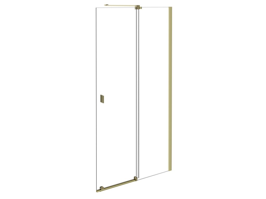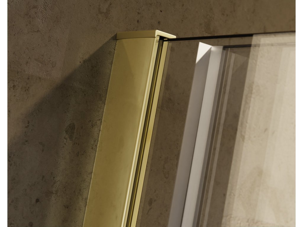 Walk-in sprchovací kút VAYO GOLD (zlatá farba) s pevným a posuvným sklom , ktorý je zaistený rozpernou tyčou s maximálnou dĺžkou 120 cm . V spojení s modernými odtokovými kanálikmi vznikne úplne bezbariérový priestor na sprchovanie. Zásteny sú vyrobené z bezpečnostného skla s hrúbkou 8 mm.