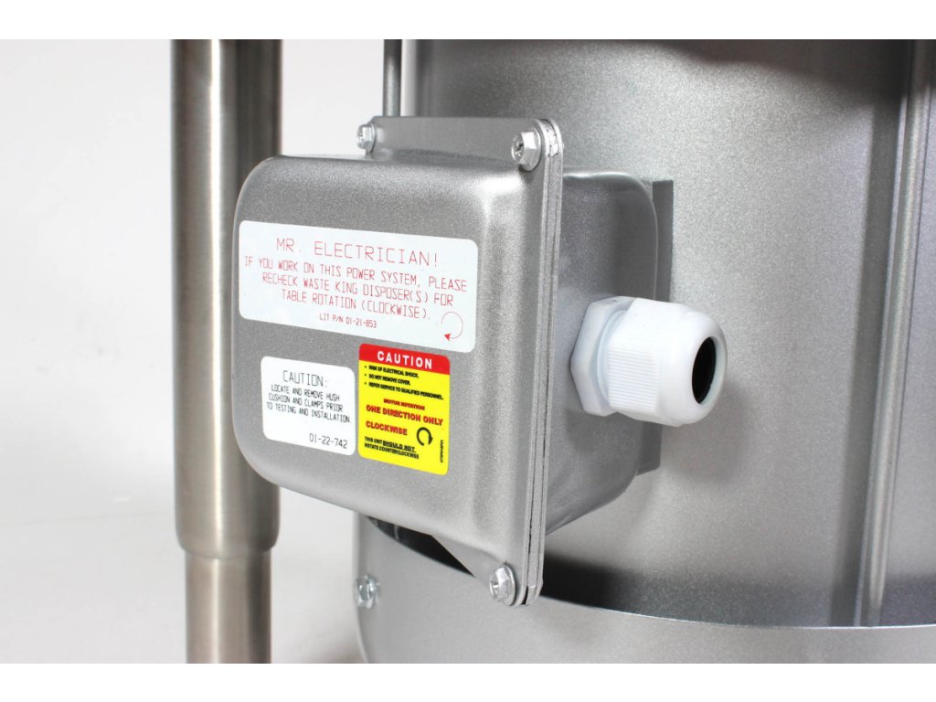 Tlačidlo a napojenie na drez nie sú súčasťou balenia a je nutné ich objednať samostatne. Prevedenie je 3-fázové. Drvičku je potrebné napojiť na prívod vody.