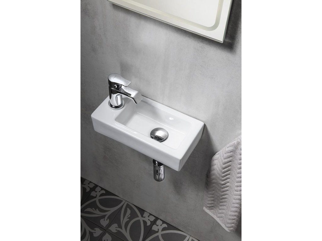 ZOE keramické umývadlo 37x18cm, otvor pre batériu vľavo, biela