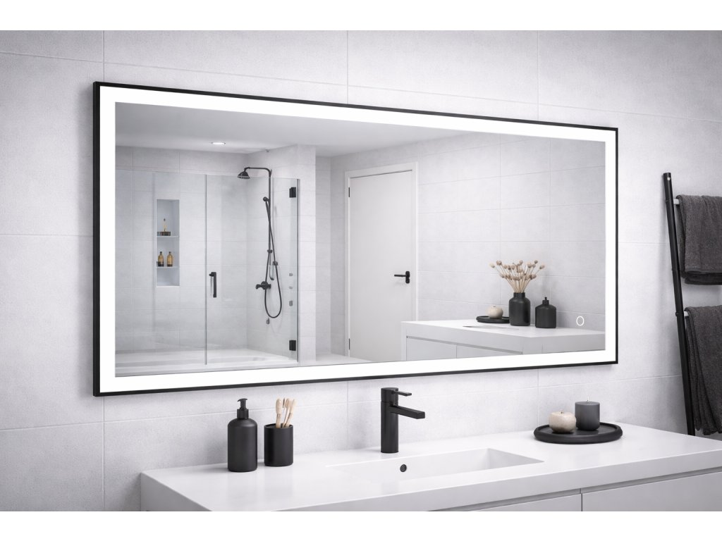 Vytvorte vo svojej kúpeľni ohromujúcu vizuálnu dominantu s LED zrkadlom Noir s rozmerom 120x60 cm. Tento model v elegantnom čiernom matnom ráme je navrhnutý tak, aby prepojil funkčnosť s najmodernejšími trendmi v interiérovom dizajne. Šírka 120 cm opticky zväčšuje priestor kúpeľne a dodáva jej hĺbku, ktorú oceníte v každom modernom lofte aj minimalistickej novostavbe.