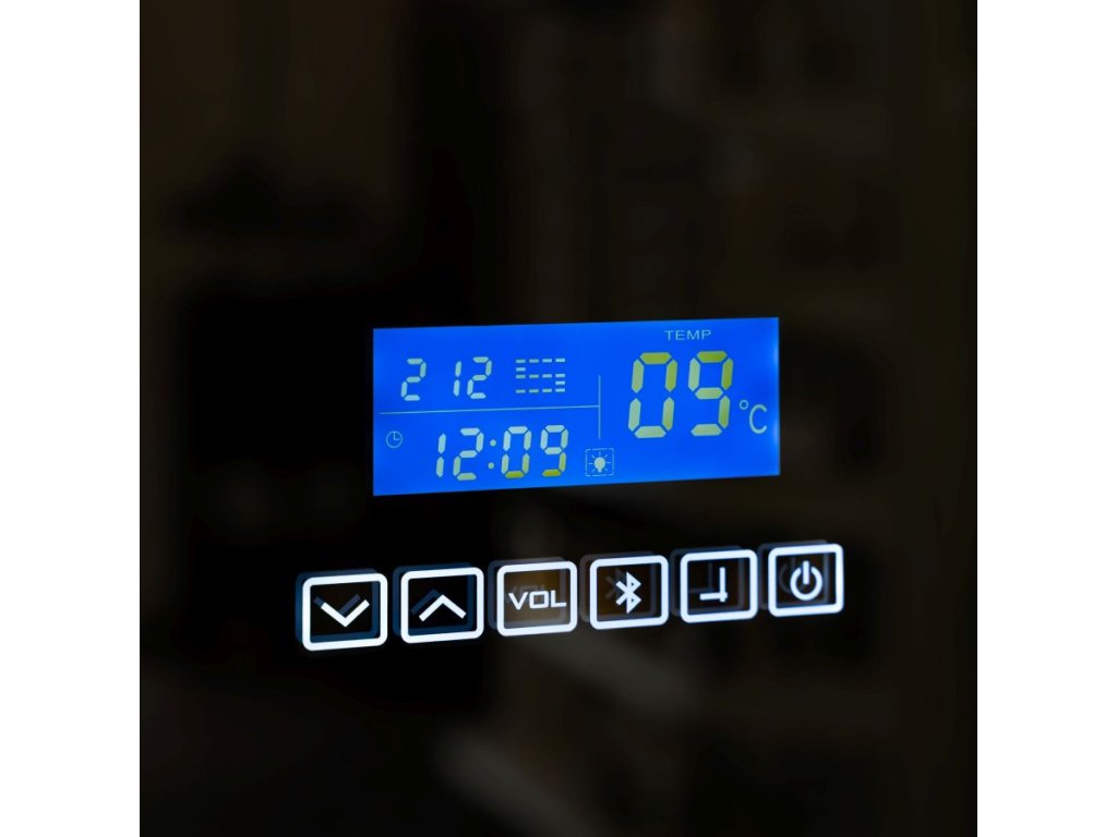 Zrkadlo s LED osvetlením a displayom na ktorom nájdete nasledujúce ukazovatele a funkcie.
